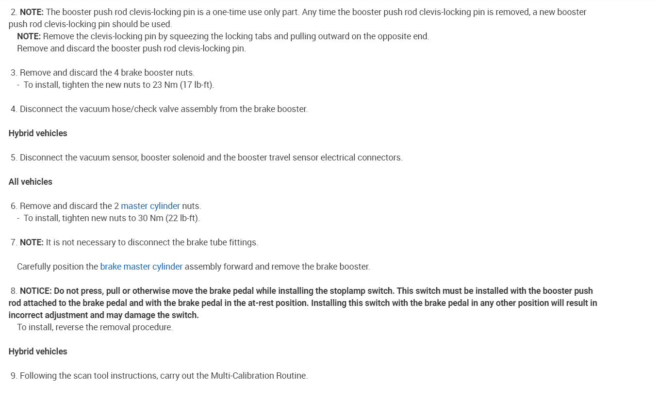 to reply what i was told to do for my master cylinder and brake booster on a 2012 ford escape on the push rod there is no adjustment and it goes in a 2 inch extension from the master cylinder so this didn't help.