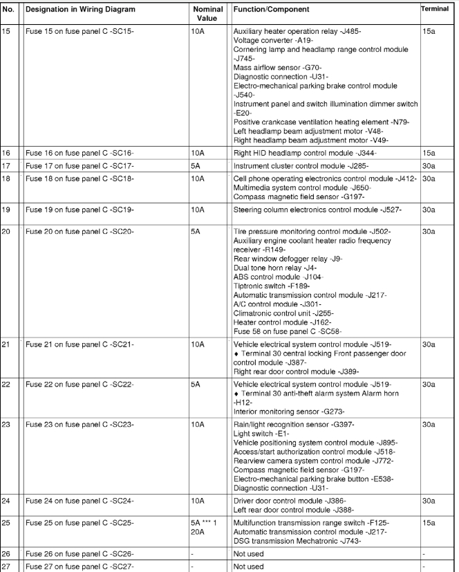 Sure, here is the fuse locations and assignments. This guided can help you with the testing as well.