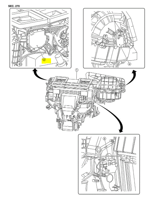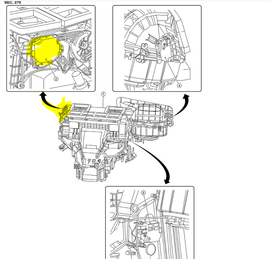 I’m trying to find the mode door actuator on the left front. removed lower panel and side panel for console and the only one that is there on the top is the amplifier part number 277523JC1B there is no other one there.