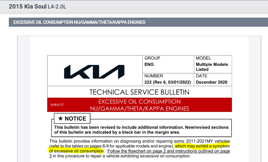Let me know. Also, you may consider contacting a Kia dealer and ask if your vehicle falls under the oil consumption service bulletin/recall.