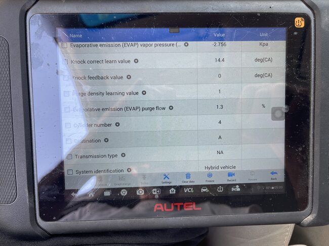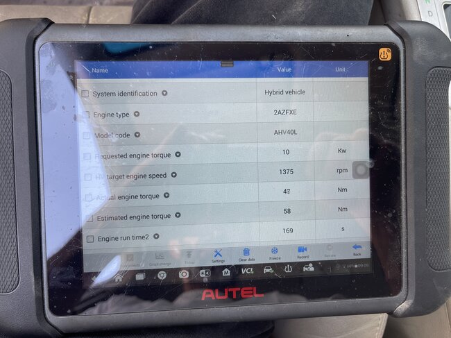 A friend's car. He says he notices loss of power going uphill. He tried everything he knows. He even removed the hybrid battery and tested. He is good at that i know. He sent it to me. No engine codes. Engine sounds normal. Full in coolant and oil. No transmission codes, no hybrid codes. I drove it and it drove fine. I tried uphill and it's not that bad but weaker than it should. Feels like it's trying but the response is not where it should be. I am familiar with cars and shudder and transmissions, and that is not it. I feel like the catalytic may be the issue here. I took a lot of live data and few data to help you help me as much as possible. The first o2 sensor on these is right on top. I have the gauge that connects to the o2 sensor hole and i can measure. Should i measure this first one and then the one after the cat you think? Let me know if any of these numbers make sense.