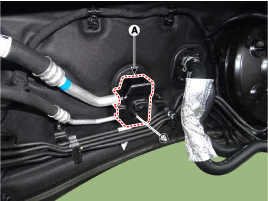 After loosening the mounting nut, remove the expansion valve cover (A).