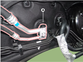 Disconnect the blower motor connector (A) and remove the wiring mounting clips.