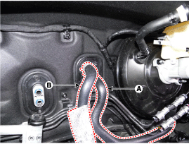 Disconnect the inlet (A) and outlet (B) heater hoses from the heater unit.