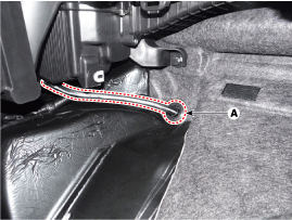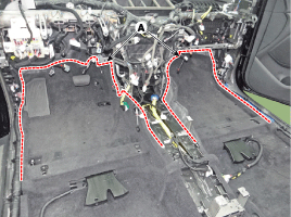 Separate the floor carpet (A) to obtain space for removing the rear heating duct.