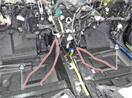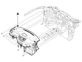 After loosening the bolts and nuts remove the main crash pad and cowl cross bar assembly (A) together.