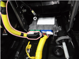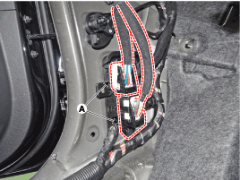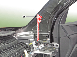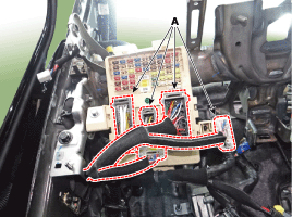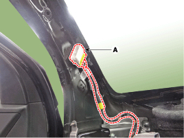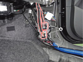 Disconnect the connectors (A) and the mounting clips in the front pillar.