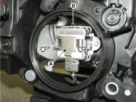 5. Remove the ignitor and HID bulb (B).