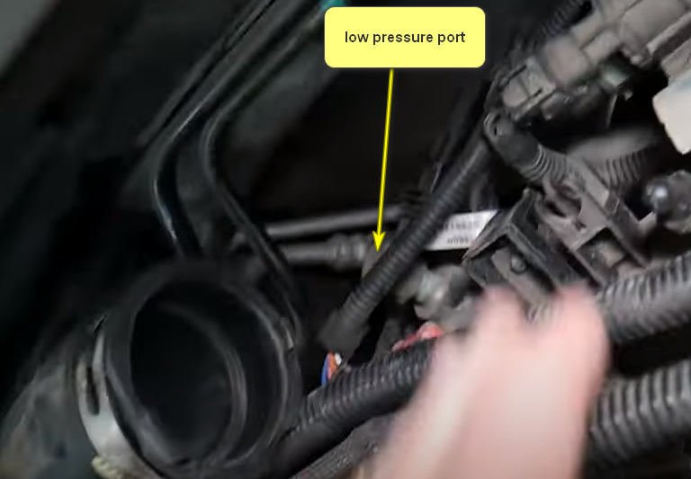 I am trying to find the low-pressure A/C port on the vehicle listed above pop, but I can only find the high-pressure port. I have looked everywhere but I can't find it.
