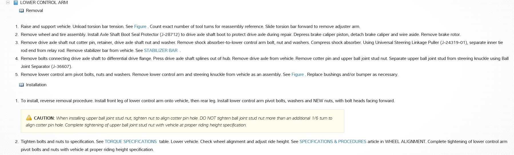 Lower control arm removal