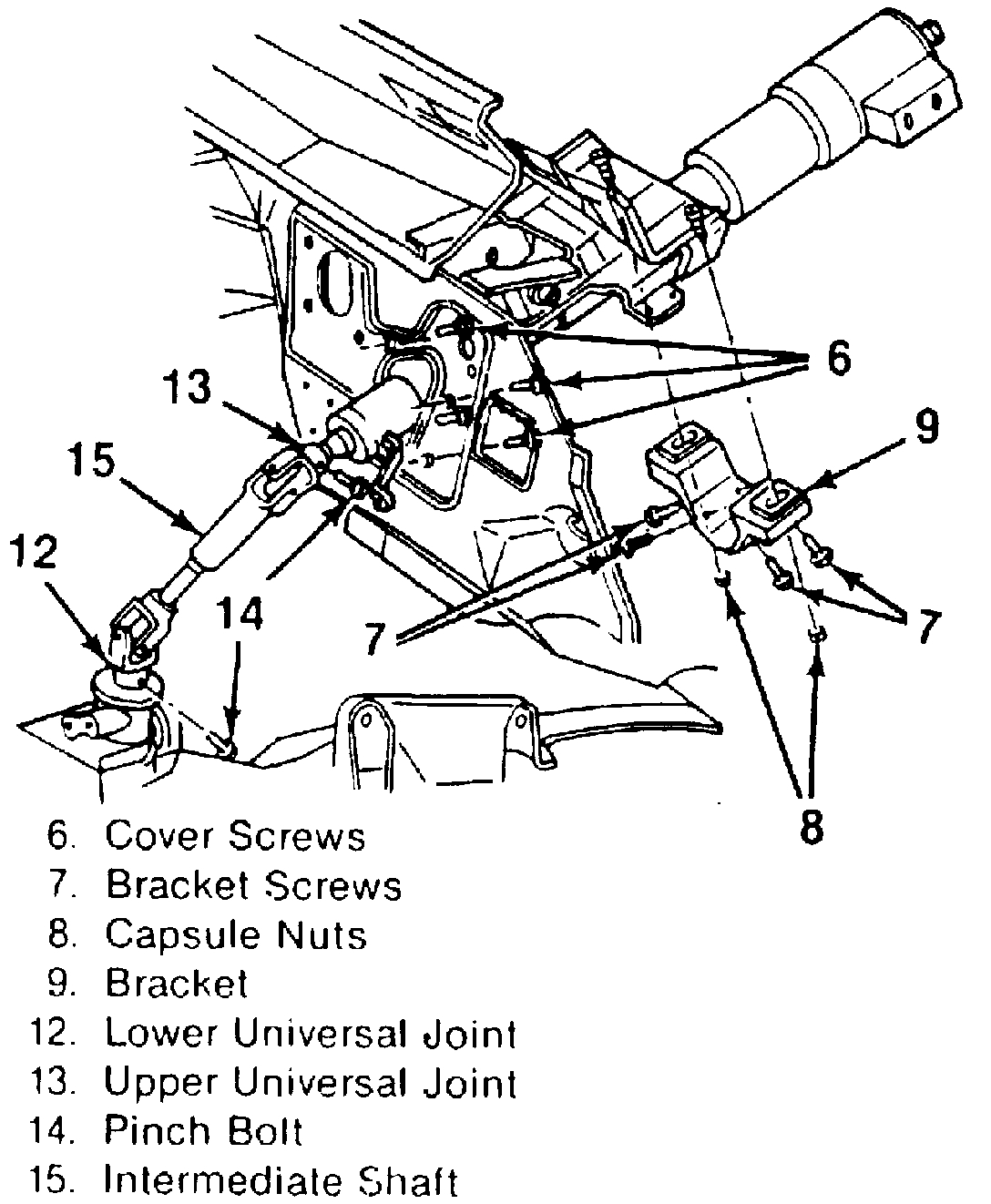 3. Remove upper universal joint pinch bolt, from intermediate shaft. Mark relationship of universal yoke to steering shaft.