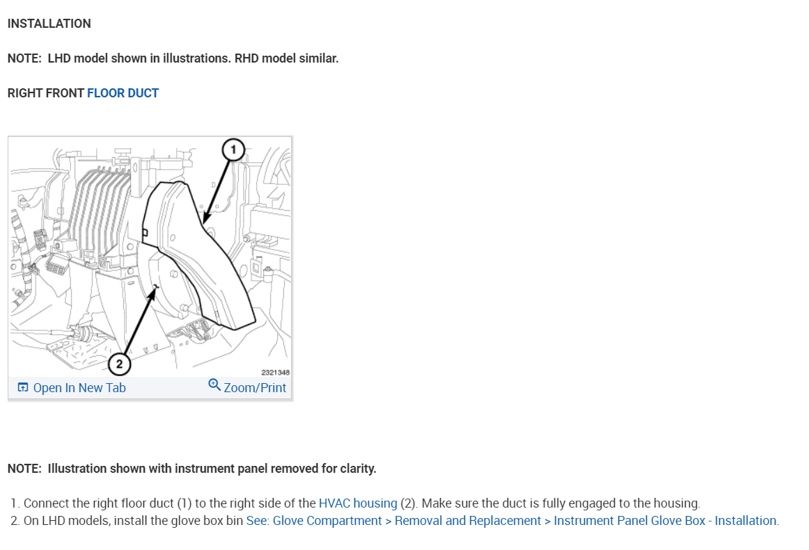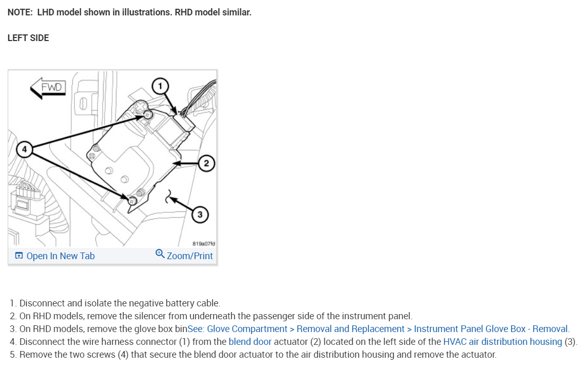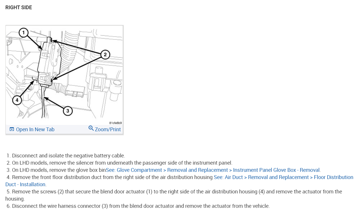 Here are both the drivers' side and passenger side actuators so you don't get them mixed up. Also, you will need to remove the glove box and some ducting. Check out the images (below). Please let us know how it goes.