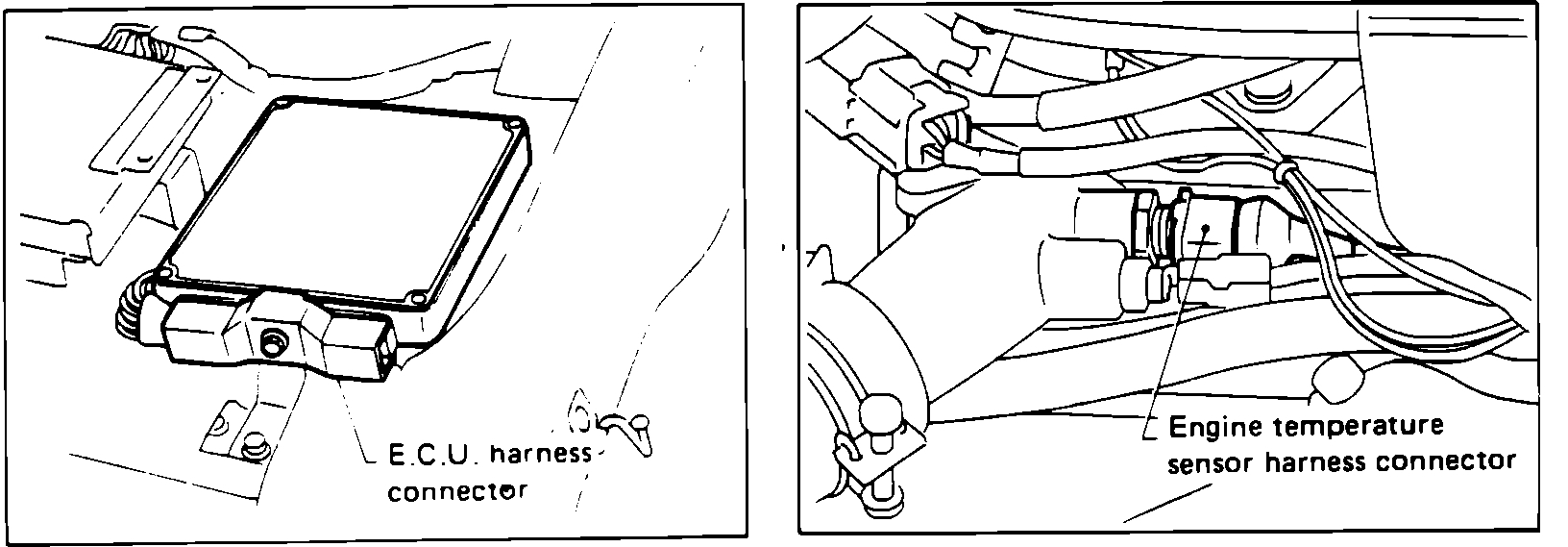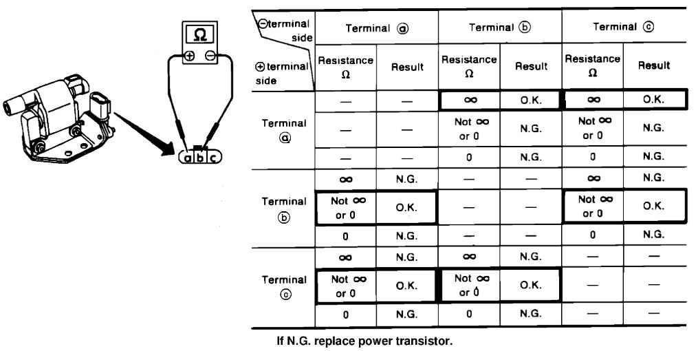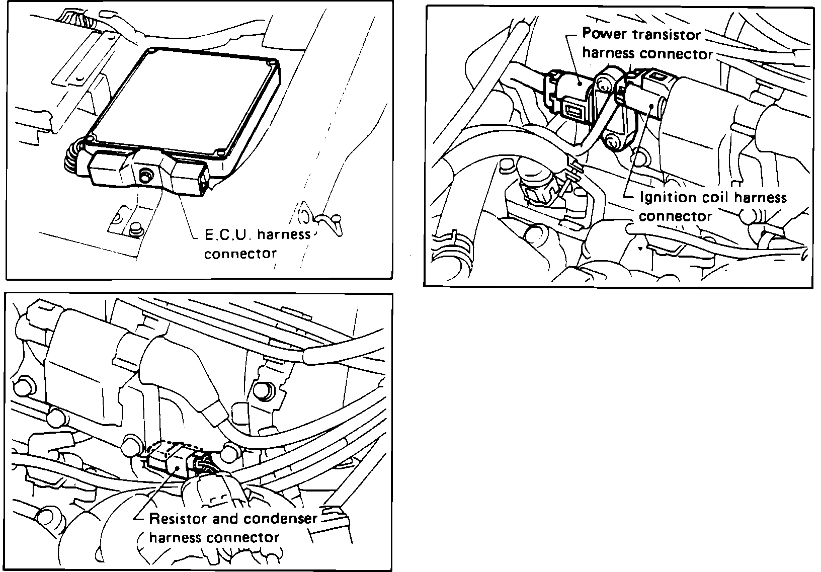 2. Disconnect power transistor connector (to prevent electrical discharge from the ignition coil, avoiding possible electrical shock).