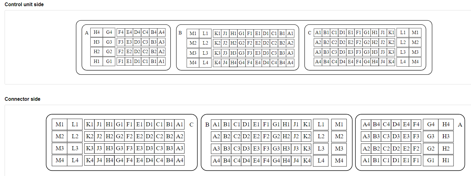 There are 3 connectors on ECM, A-B-C