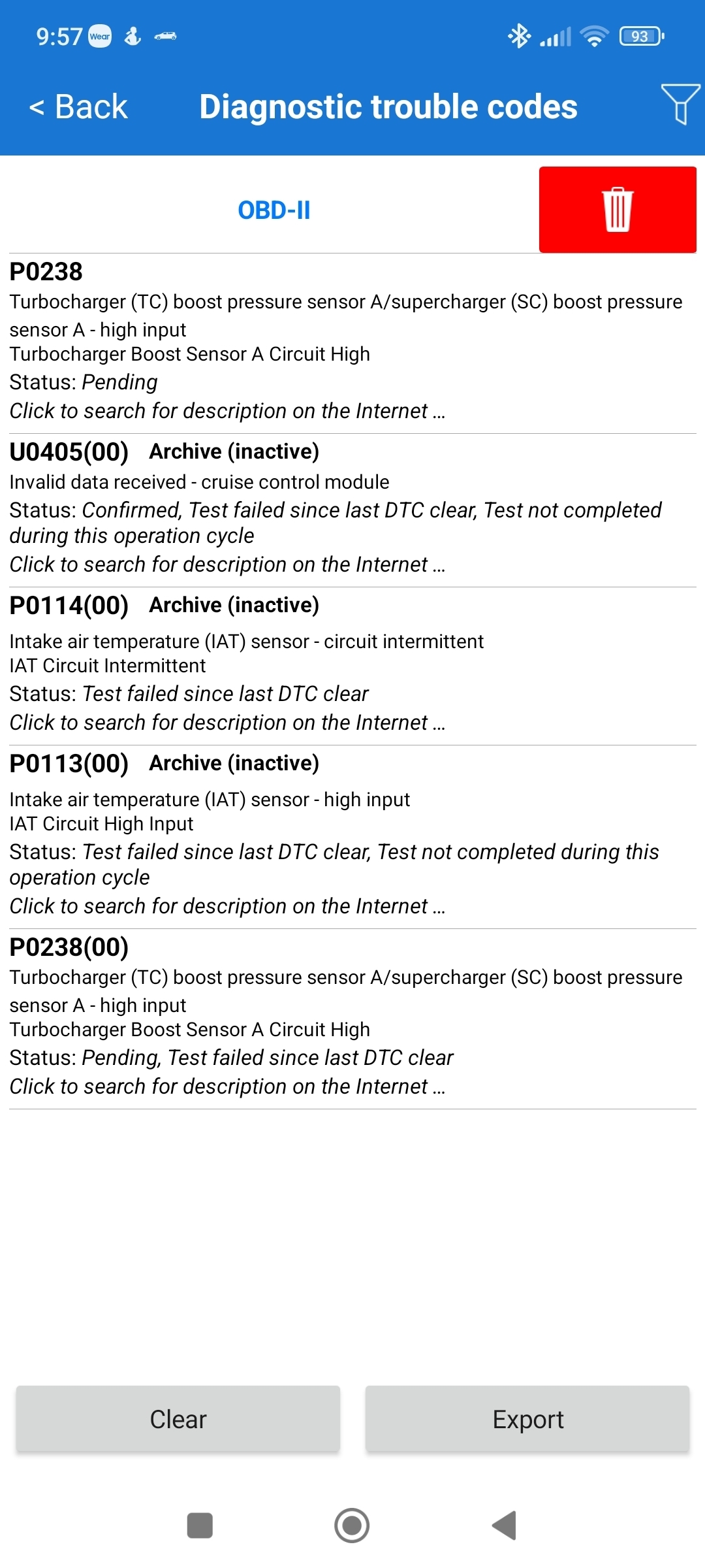 two error codes are written by the diagnostics (with VCX nano,ids software).