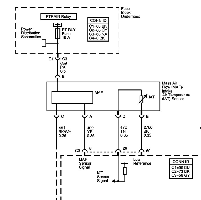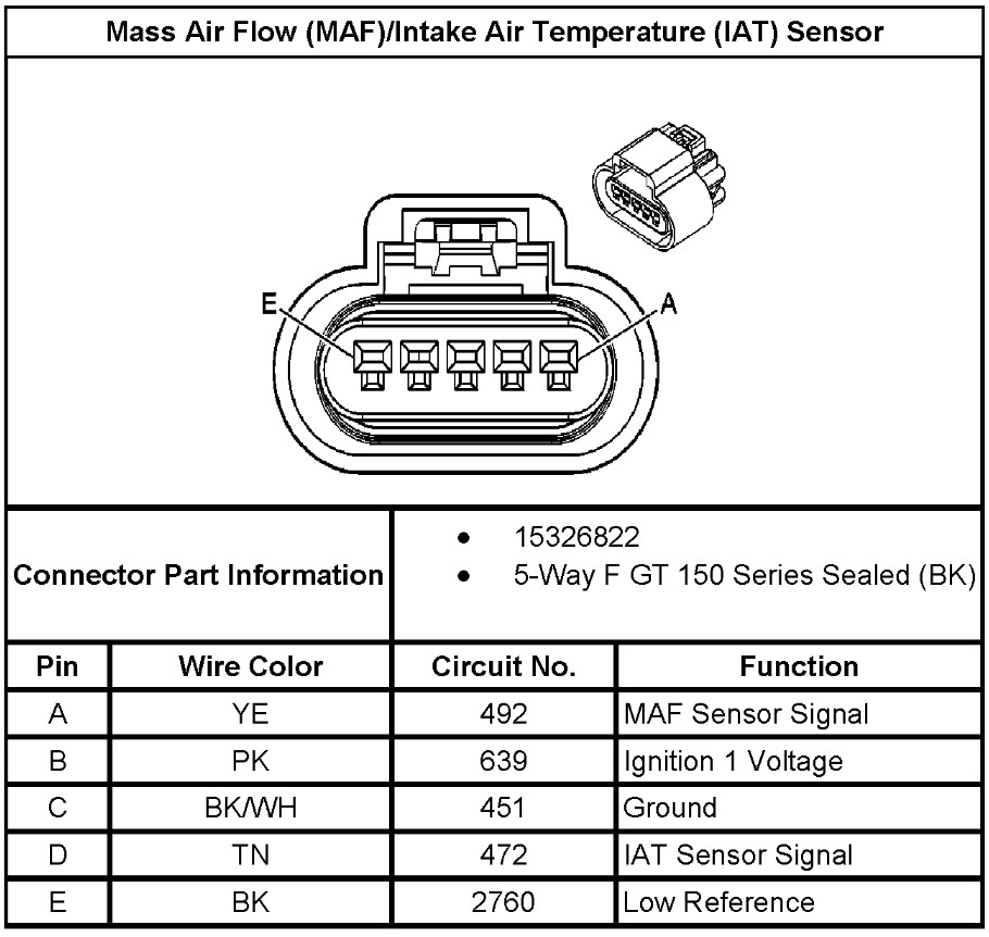 Squirrels ate the wiring to my MAF sensor. A shop replaced them with all white wires but spliced to the original colors. Another squirrel ate them again. Because of the white wires I don't know the mapping. When I get back to the original wire colors I need to figure out which colors go to where on the new pigtail. What is the color map for the 5 wires on the pigtail? thanks