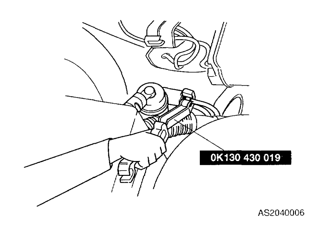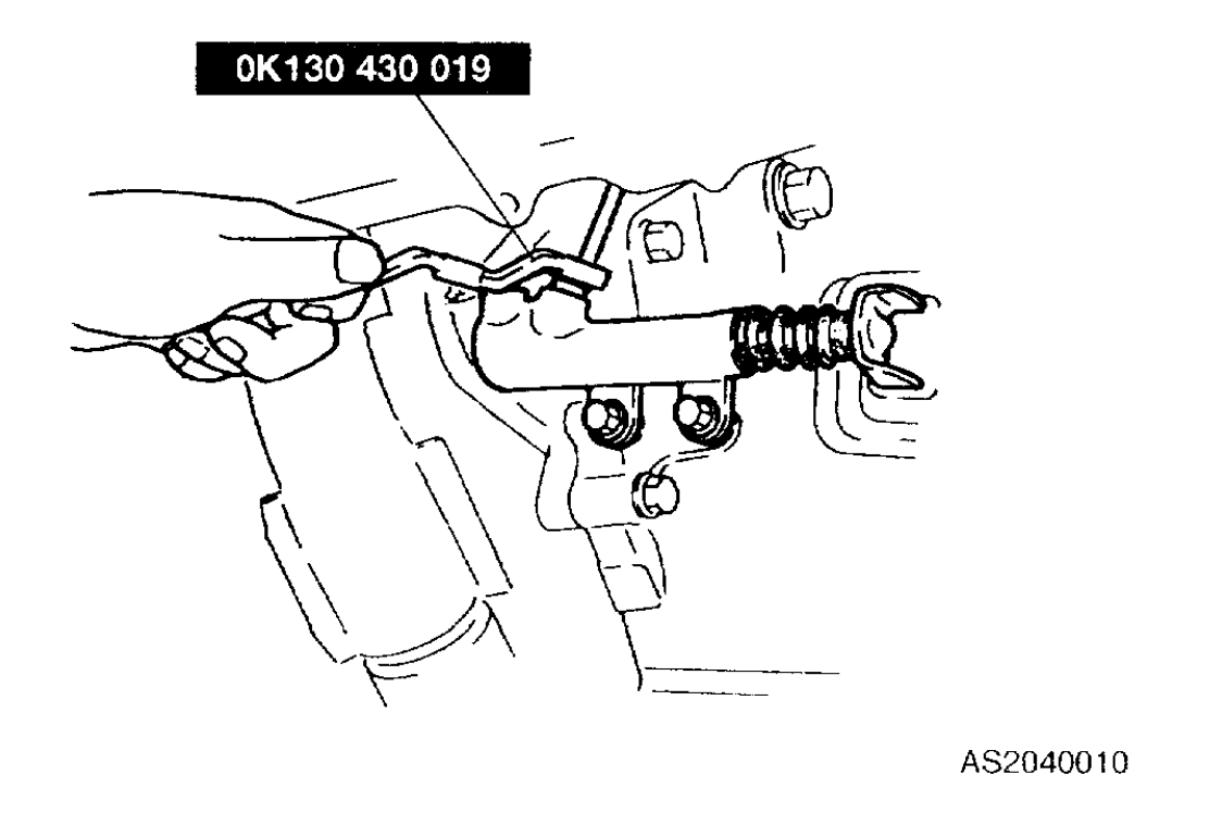 6. Disconnect clutch hydraulic line with SST(OK130 430 019).