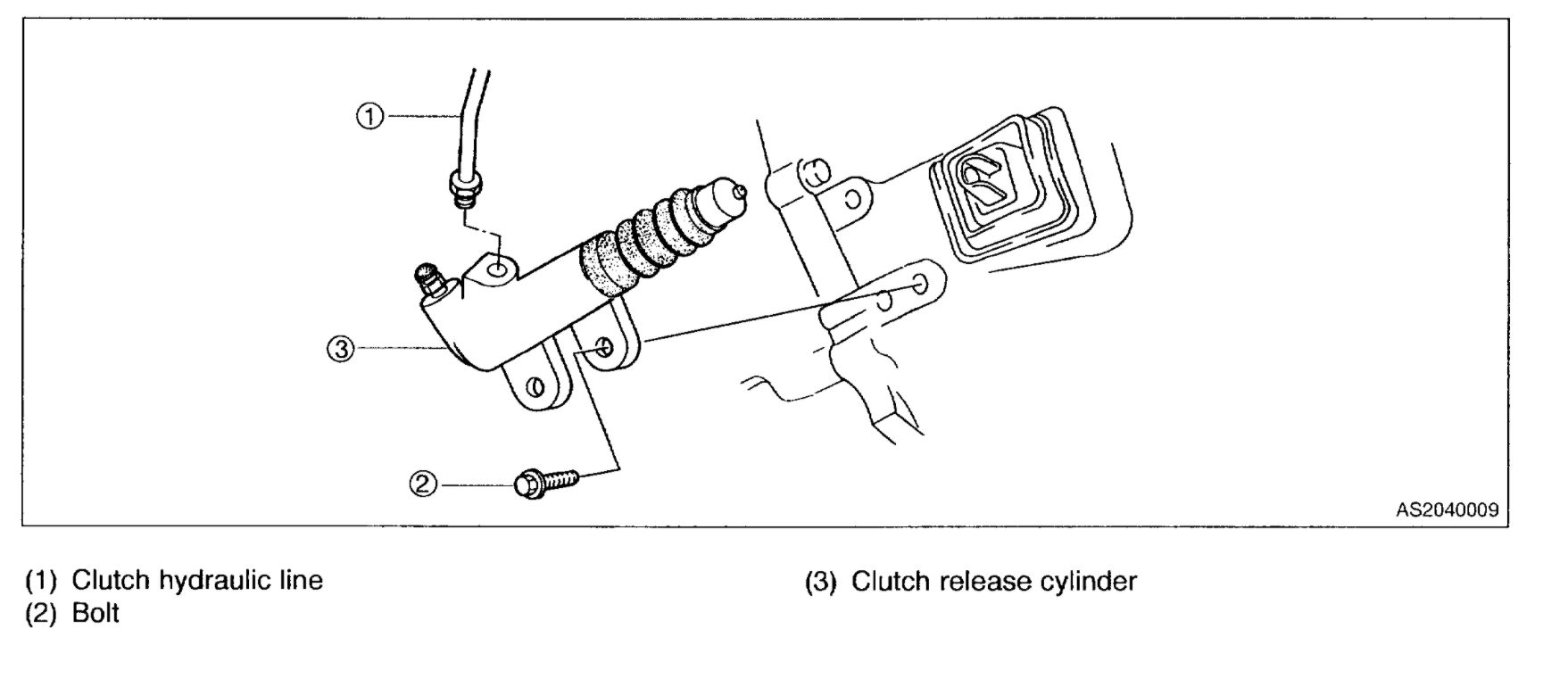 4. Remove two release cylinder bolts, then remove release cylinder.