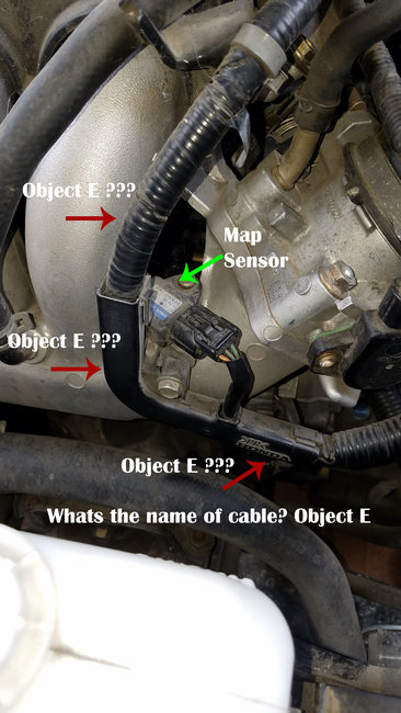 I'm having problems finding out the name of the harness that connects to the MAP sensor. I need to replace the whole harness because I had a rodent built a nest in my engine bay and made a snack out of a lot of wires/harness. : '( I don't have the money to pay a professional mechanic to fix the problems, so I plan on fixing all the wires that where damaged myself! I have pictures! If you can tell me the names of the objects It would help me greatly.