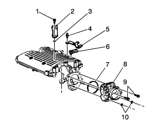 6. Remove the MAP sensor (6) and seal from the upper intake manifold. Discard the seal.