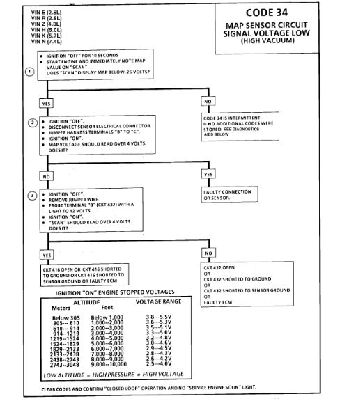 CODE 34 - MANIFOLD ABSOLUTE PRESSURE SENSOR CIRCUIT (MAP) SIGNAL VOLTAGE LOW - HIGH VACUUM