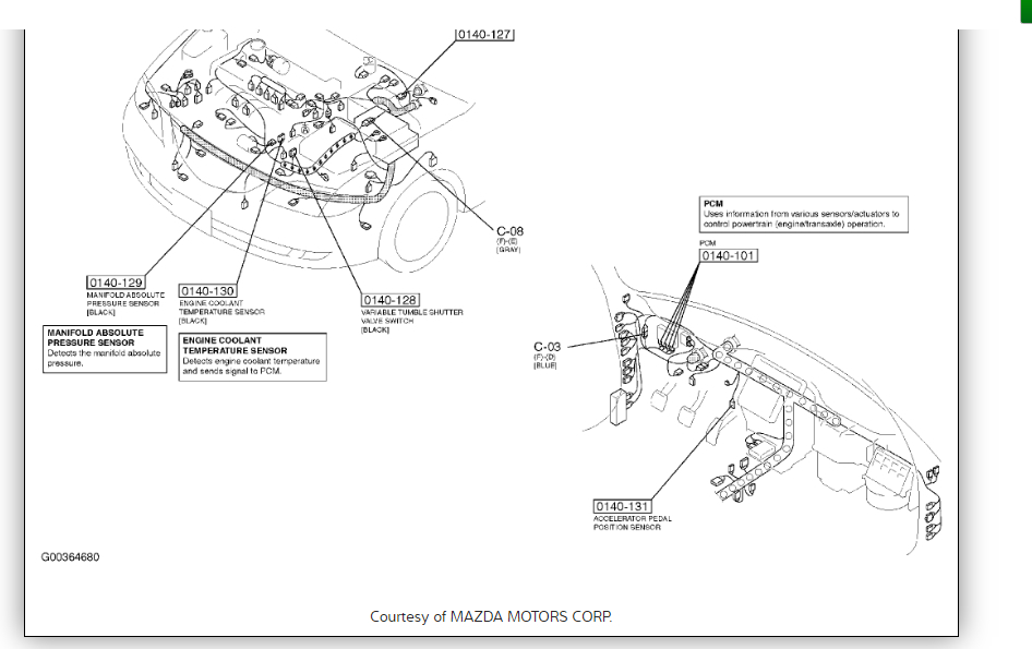 I am trying to figure out what my MAP sensor (part# KL47) connects to on my car. It has a vacuum hose that comes out the bottom of it but the hose looks like its cut or broken because it does not connect to anything else. Also I was told that I might want to replace the purge solenoid, and I have no idea where that is. My last problem is the location of my 02 sensor. What one is bank 1, front or rear? Sensor 1, upper or lower? i can't seem to find a straight answer on this subject at all. I have several DTC codes that came up for my car and most of them have to do with 02 sensor bank 1 issues. Thanks for your help.