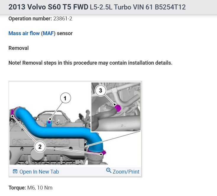 I am trying to find the location of the Mass Air Flow Sensor on the vehicle listed above (t5).