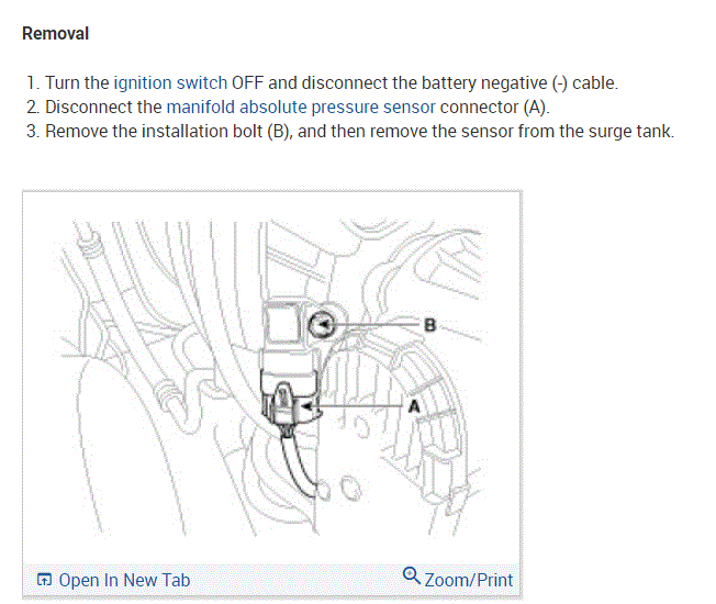 The MAP is located on the left side, in front of the engine. See pic 1 below. The remaining pics are the directions specific to removal and replacement.