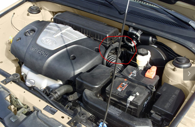 The mass air flow sensor is located at the end of the air tubing by the air filter box.