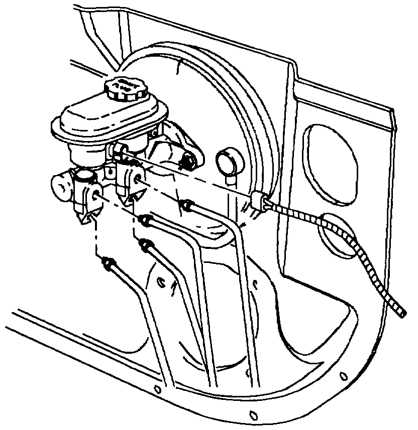 n. Once again, tighten right front brake pipe into master cylinder while pedal is being depressed.