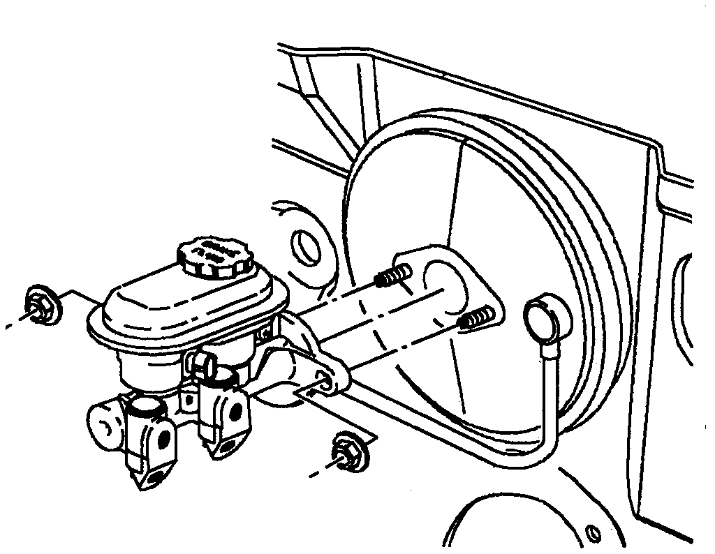 1. Position master cylinder onto brake booster studs and install fastening nuts.