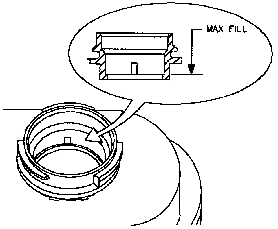 5. Fill brake fluid reservoir with clean brake fluid up to the base of the reservoir fill neck.