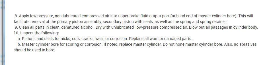 The way we want to come at this is to identify the issue on the vehicle that is causing it before taking it apart. If the master cylinder is the issue, I doubt you will physically see it unless you find a cut seal.