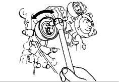 Caution: Prevent the tensioner from moving with the tensioner lock bolt as it is turned.