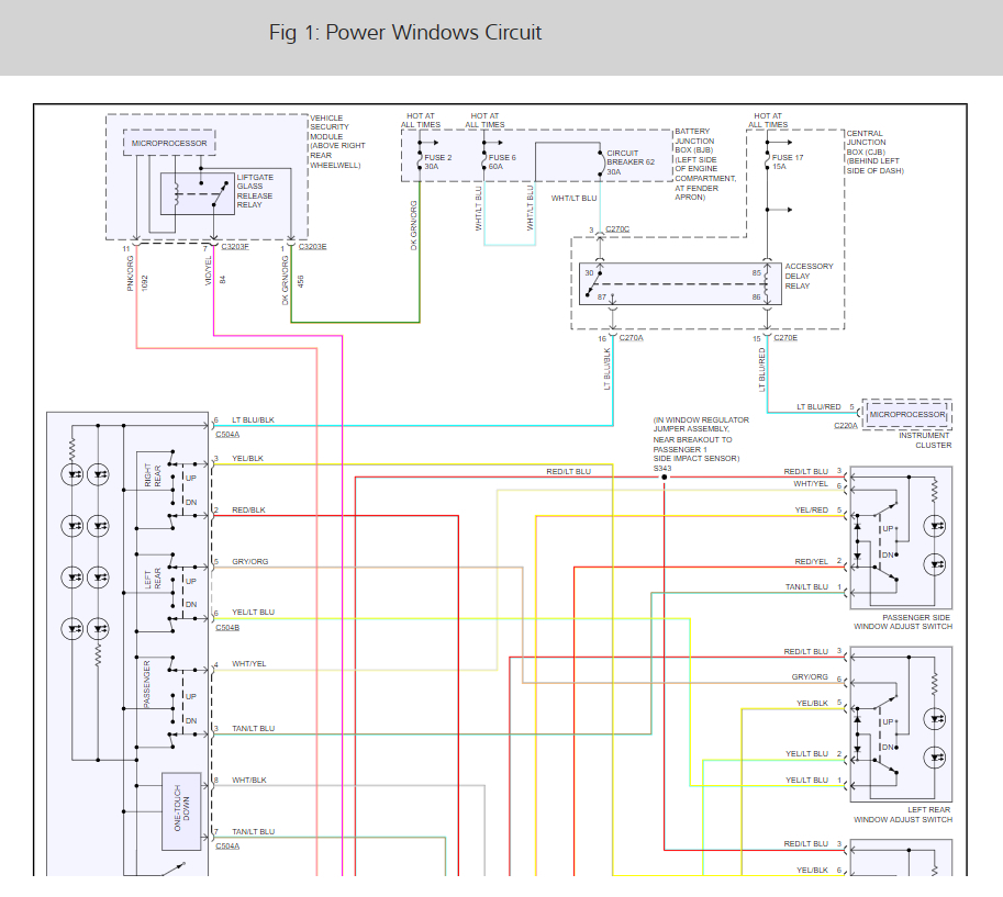 The back left side window will not go down... All other windows work using either the main window console on the driver door or the switch at the door itself. Only the back left window will not go down by using either switch..main console on driver's door or switch at the door. Could possible issue be fuse, relay, motor or electrical connection?