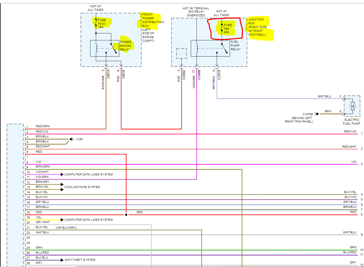 In the first pic, I highlighted two fuses. One is in the vehicle (fuel pump) which I circled and the other is under the hood related to the engine off timer, which again isn't making sense considering what was done.
