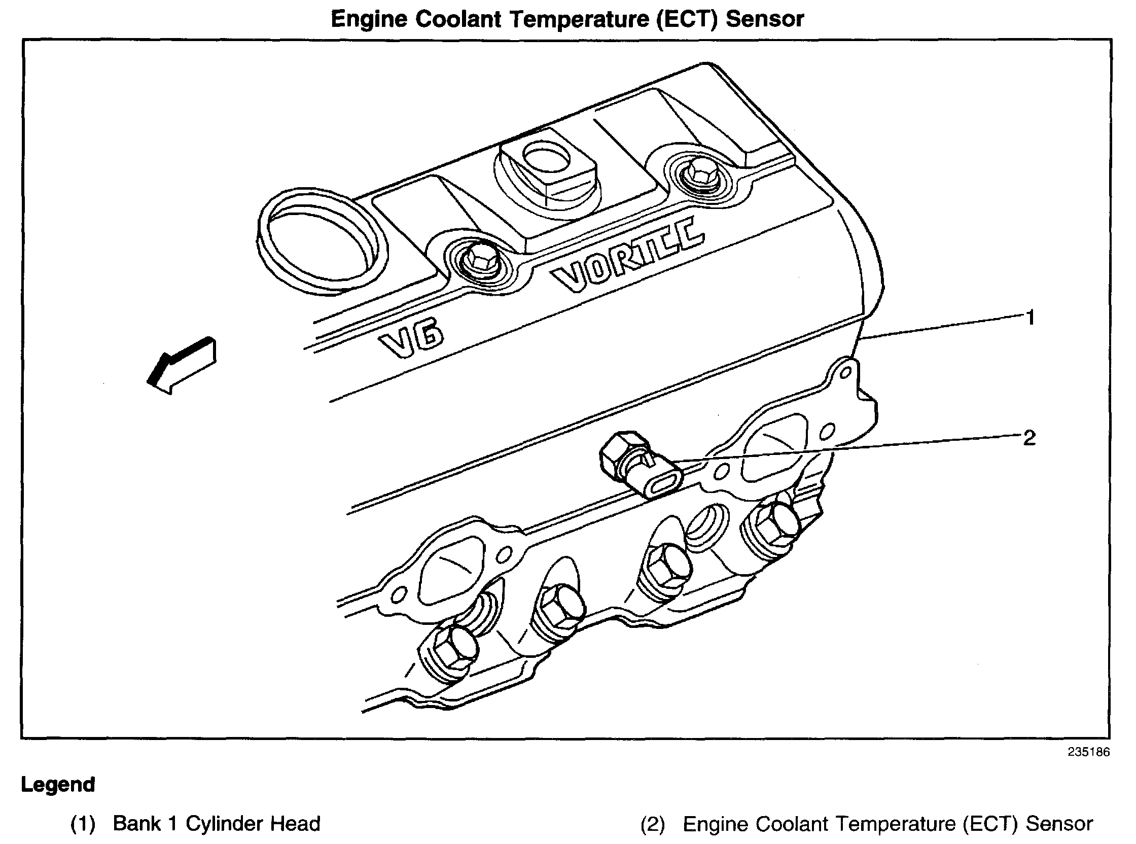 CAUTION: Allow sufficient time for the engine to cool before removing the ECT sensor. A hot engine may cause an excessive coolant loss or a personal injury.