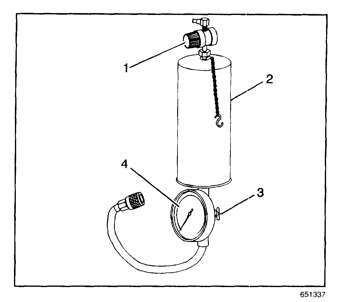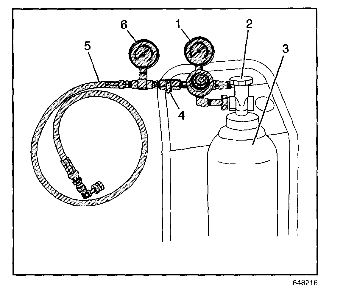 14. Install the J 44466-10 (5) to the J 41413 tank (3). The J 44466-10 regulator is preset to 150 psi.