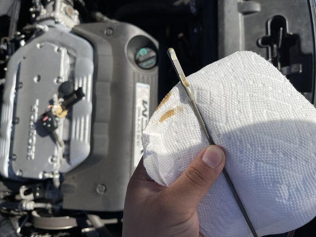 Checked the oil this morning and the dip stick looks a bit dry, barely the tip is catching oil.
