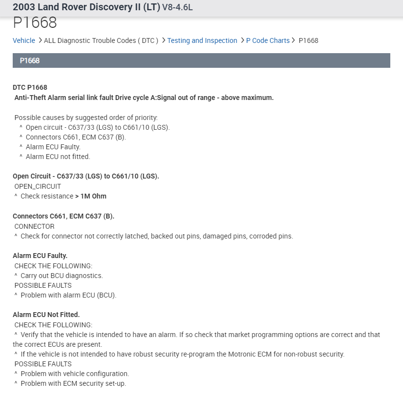 The P1668 is an anti theft code, typically gets triggered due to an issue with the alarm.