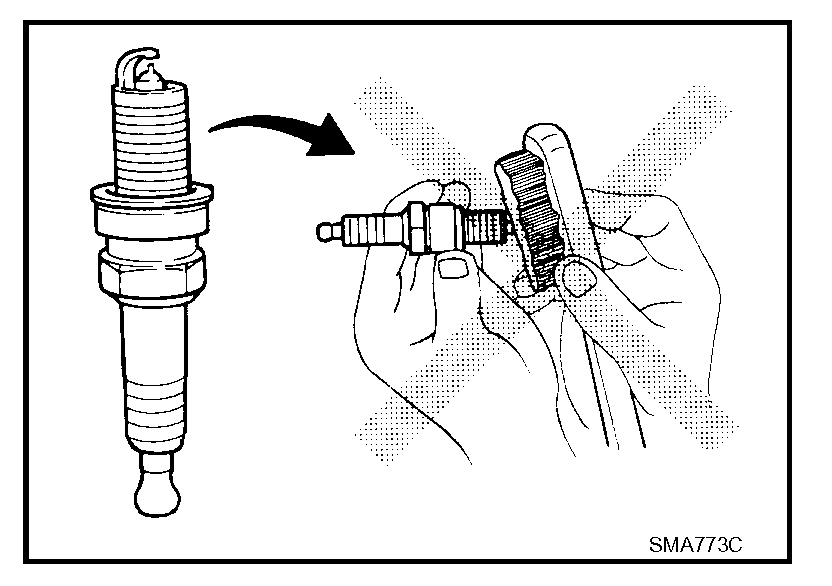 ^ Checking and adjusting plug gap is not required between change intervals. If the gap is out of specification, replace the spark plug.