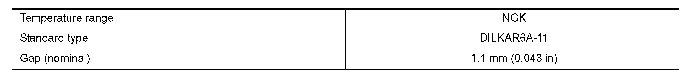 Gap (nominal): 1.1 mm (0.043 in)