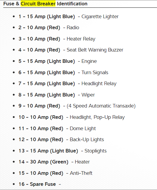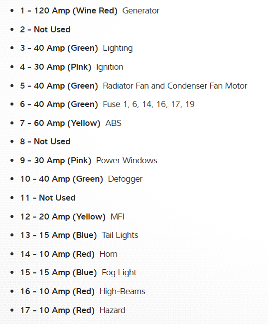 Picture if possible also i need to know what each fuse is for and where they are located pic .