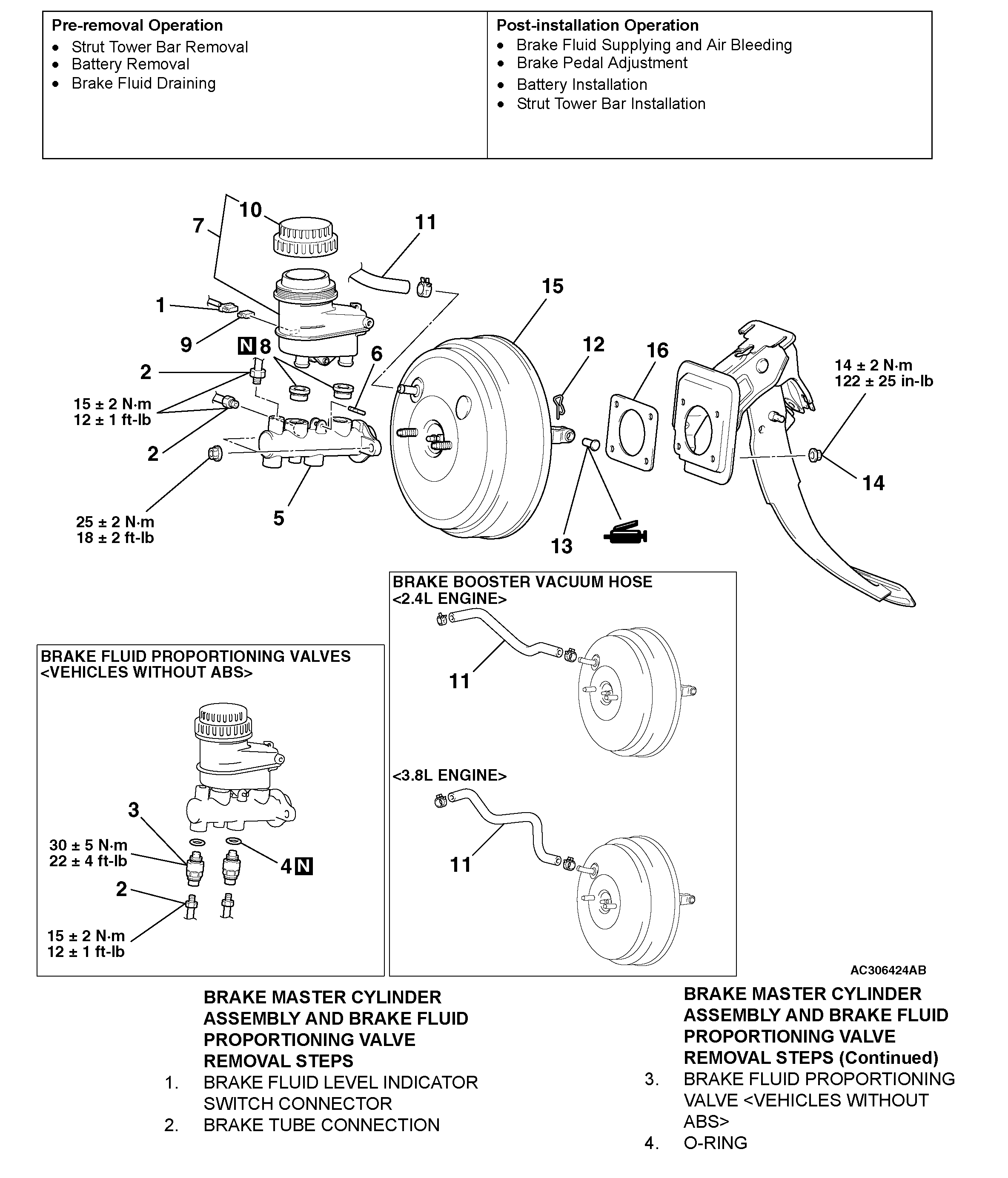 Vehicle Brakes and Traction Control Hydraulic System Brake Master Cylinder Service and Repair Procedures Removal and Installation