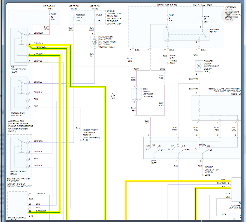 So I tested for power at the harness. it has power. I plugged in back in and tested for power the A/C pressure switch (pink wire) no power, engine on and running.