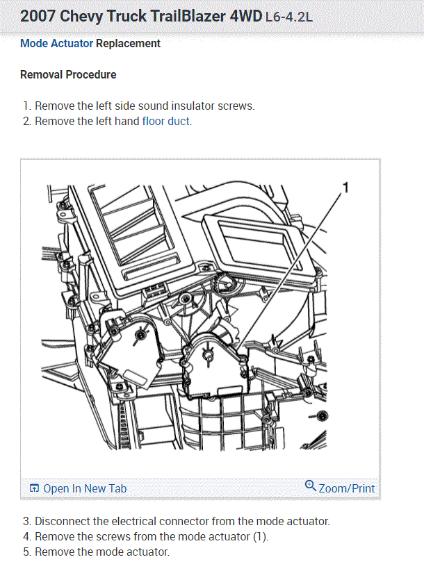 The mode door actuator is located under the dash on the left side of the HVAC box.