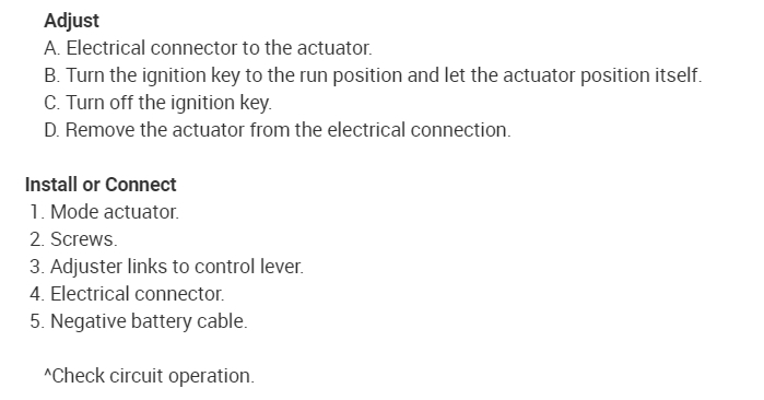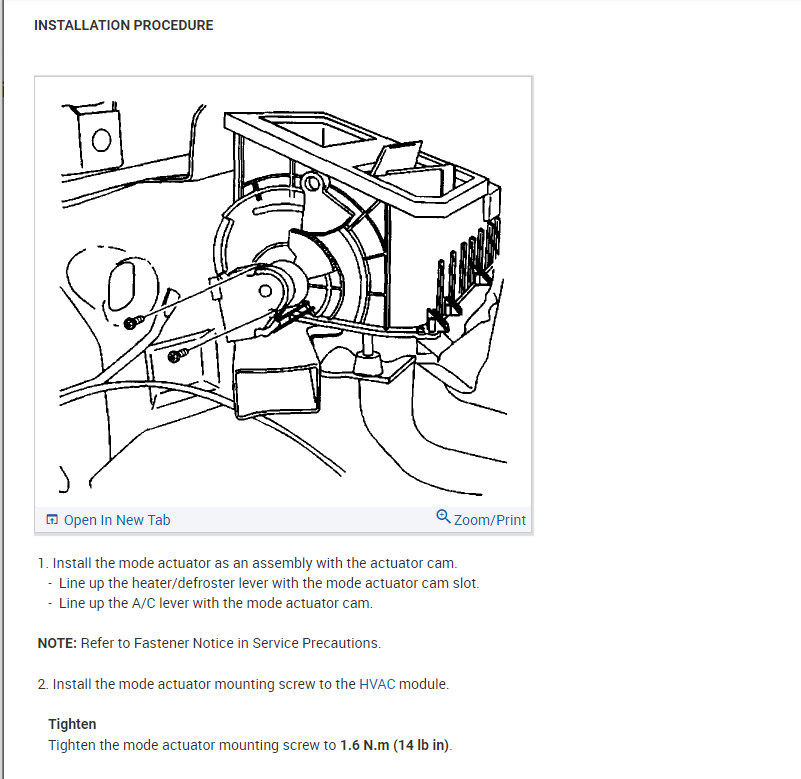 Tighten the mode actuator mounting screw to 1.6 N.m (14 lb in).