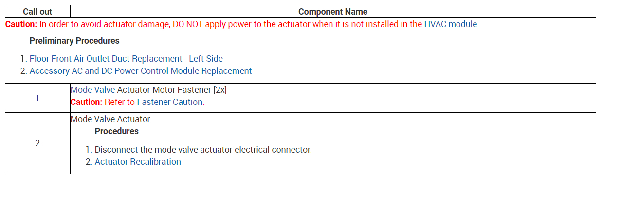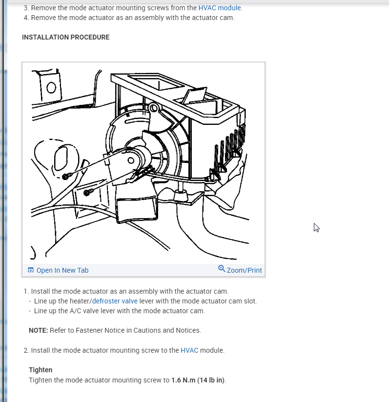 Vehicle Heating and Air Conditioning Air Door Actuator / Motor Service and Repair Procedures Heating and Ventilation Mode Actuator Replacement