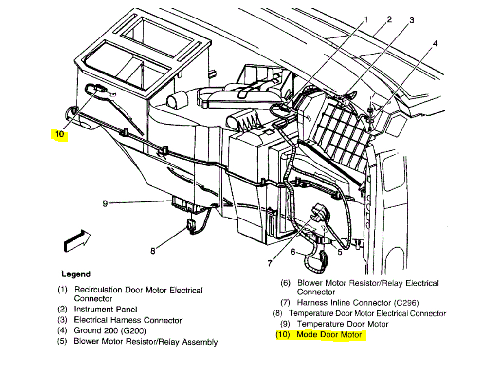 If you are unable to control the air flow direction, chances are there is an issue with what is called a mode door actuator. This actuator is responsible for directing air flow to the requested location.