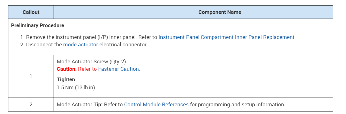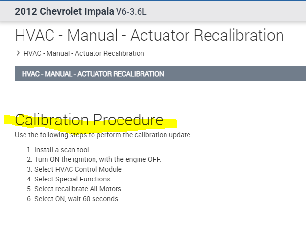 The actuators you mentioned are two different ones. The mode door actuator is for airflow direction and the temp (heat) is a blend air door. I suspect you are referring to the mode door (air flow direction), so I attached the directions below.